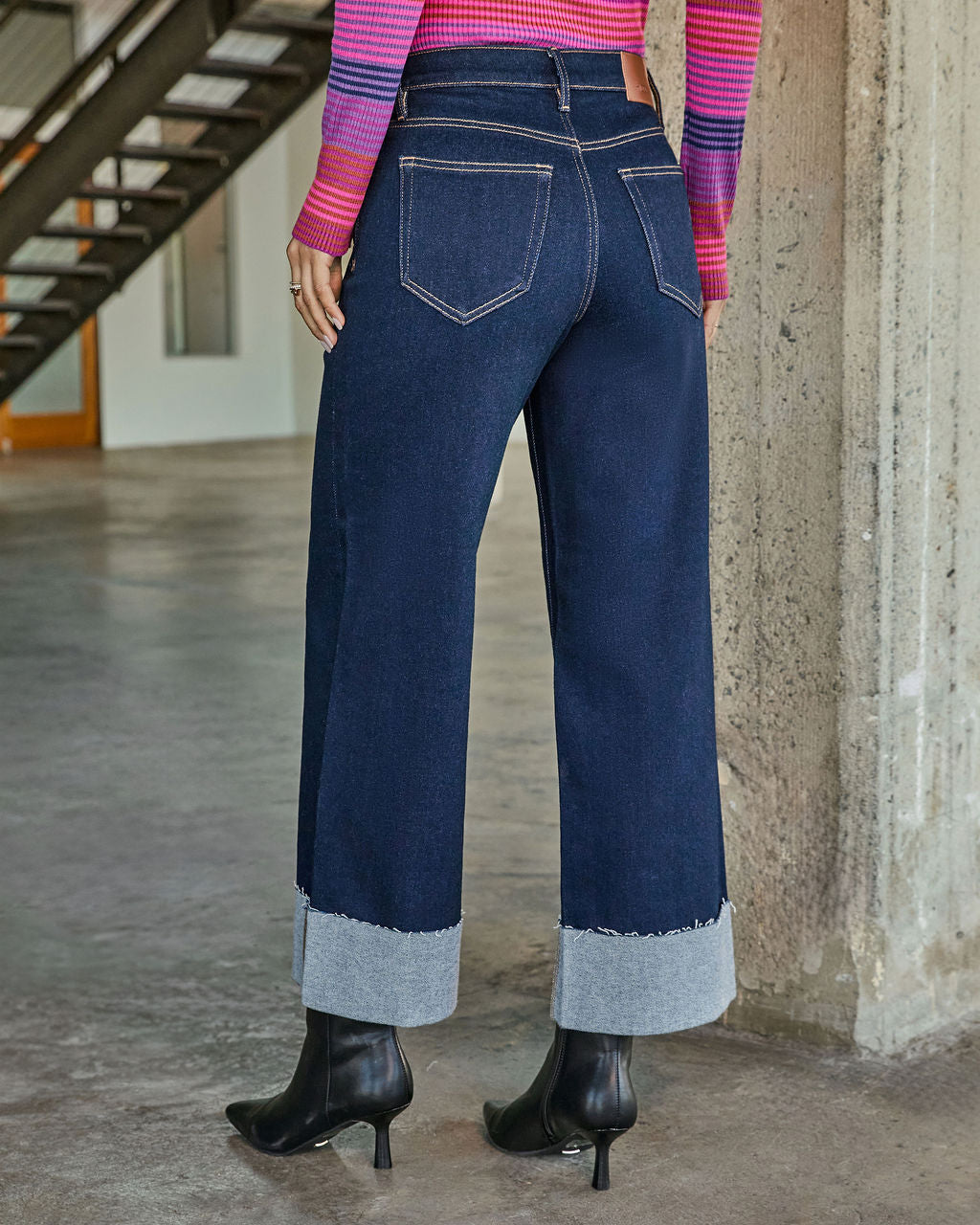 Step into a new era of denim with the Alida Super Stretch High Rise Wide Leg Jeans. combining relaxed style with effortless sophistication. Crafted from ultra-comfortable stretch denim. these jeans offer flexibility without sacrificing a polished. structured look. The wide-leg silhouette makes a bold. fashion-forward statement. complemented by a cuffed raw-cut hem for a casual. preppy touch. Featuring classic 5-pocket styling. they're the perfect foundation for versatile. mood-boosting outfits that feel both timeless and modern.