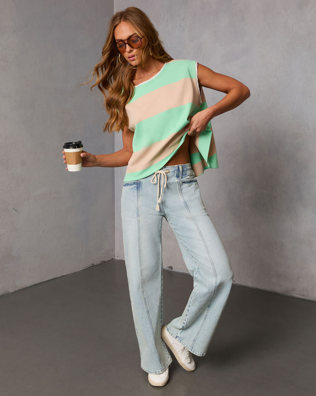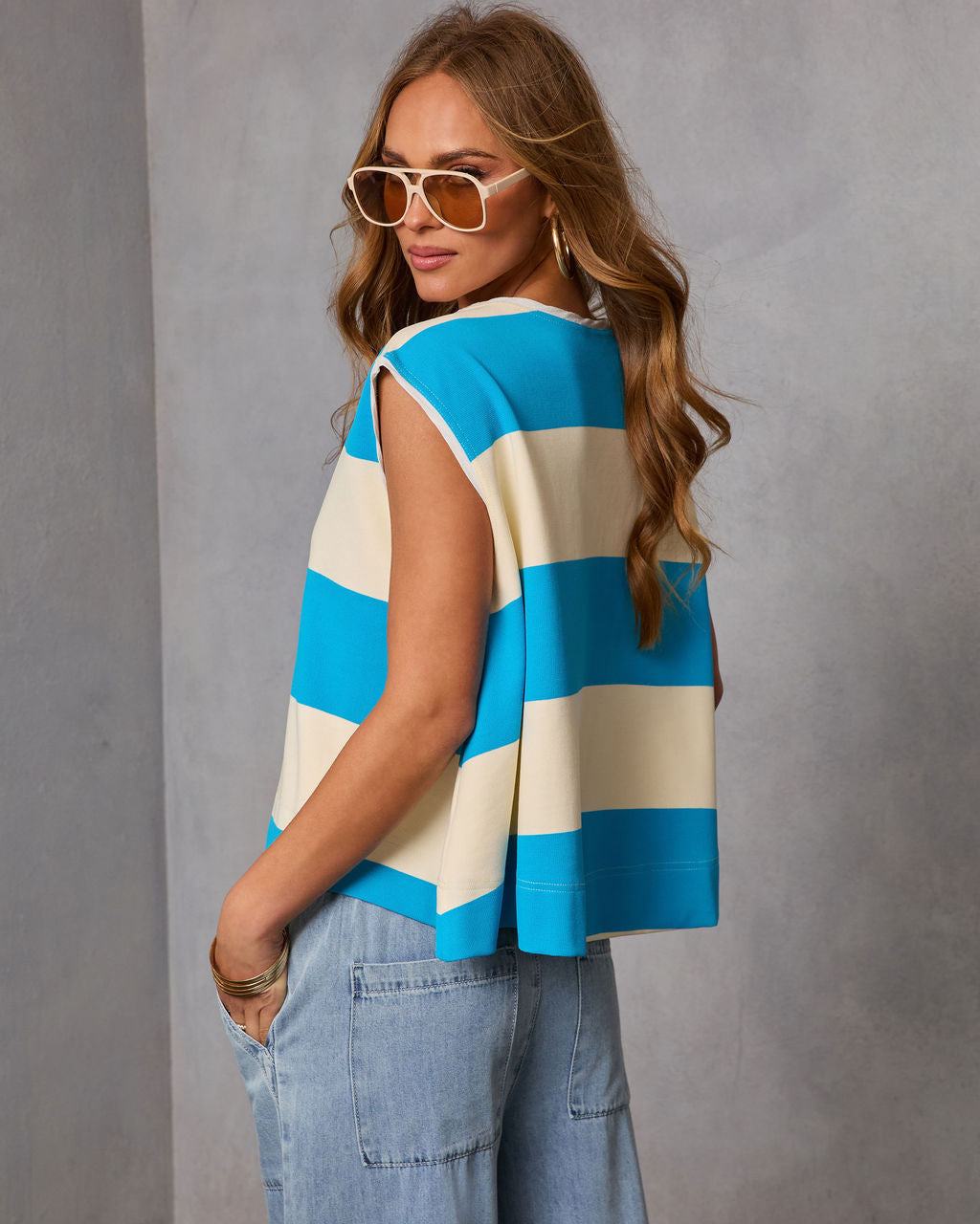 The Ambar Striped Tank Top is your shortcut to effortless cool. blending classic vibes with modern details. Made from soft jersey with a comfy stretch fit. it features a timeless striped design that pairs with everything. Cute cap sleeves and bold contrast trims add a pop of personality. while the subtle high-low hem keeps the silhouette fresh and flattering. It's the everyday essential your closet has been begging for.