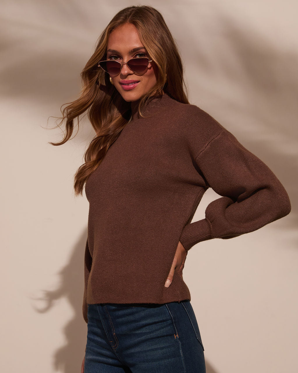 Our Amsterdam Mock Neck Sweater adds a sophisticated-chic look to your sweater wardrobe! This fine knit sweater is crafted with a beautiful. luxe weight that drapes effortlessly in a relaxed fit. Designed with a mock neckline and billowy long sleeves. Pair yours with classic denim and heels for an office chic look!