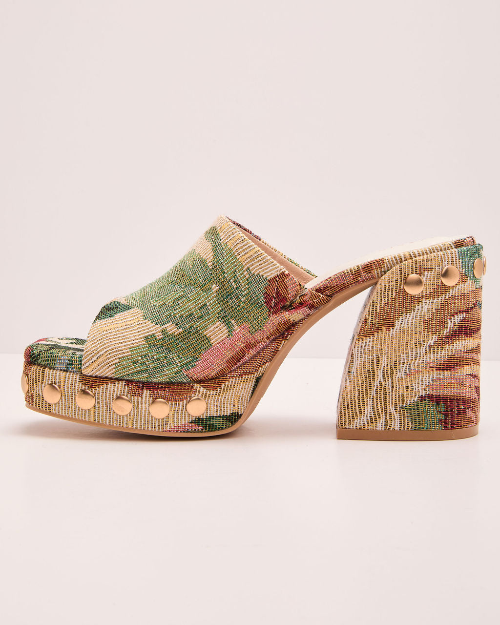 the Asha Studded Platform Mule will make every moment feel like a scene from a love story. These slip-on beauties are made from smooth faux leather. adorned with a chic studded trim that adds just the right touch of sparkle and attitude. The platform gives you the perfect lift while keeping it all-day comfortable.