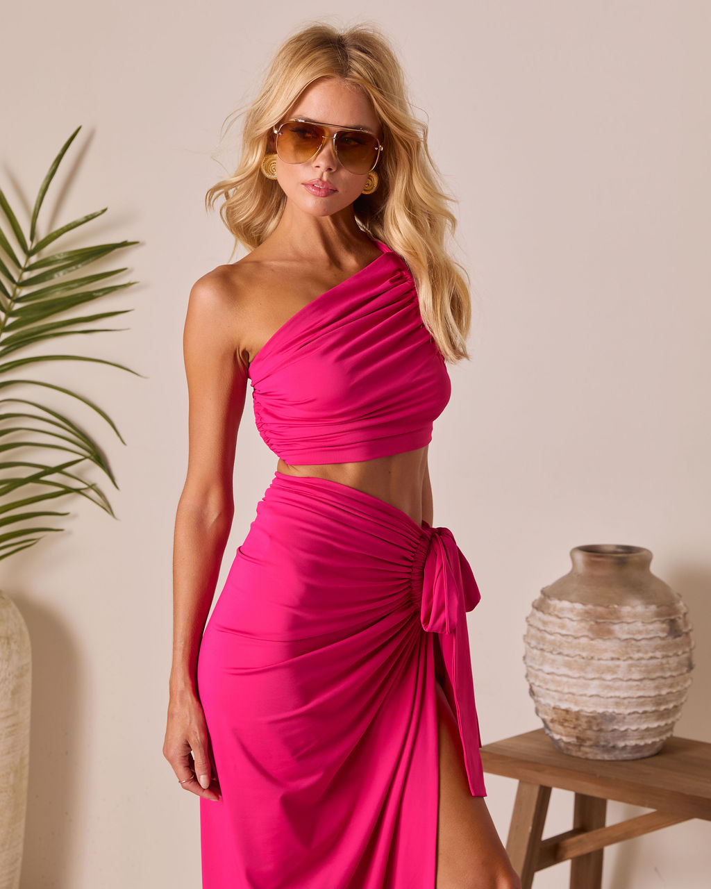 Bring the heat with the Bahamas One Shoulder Crop Top. your go-to for effortless summer style. With its sleek one-shoulder silhouette and curve-loving ruched jersey fabric. this top is all about that confident. cool-girl energy. The open back adds a flirty twist. while the cropped fit keeps it playful and Riviera-ready. Pair it with the matching Bahamas Wrap Maxi Skirt (sold separately) for a head-turning set. made for sipping spritzes seaside.