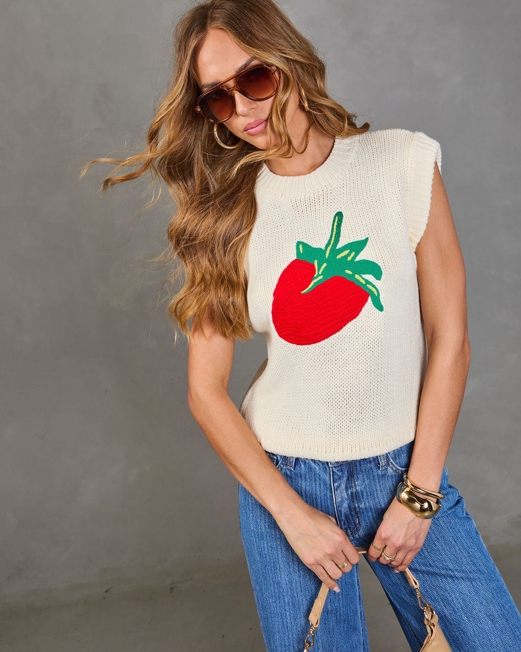 Prepare to meet the sweetest addition to your knitwear collection. a piece so charming it feels picked just for you. The Berry Darling Knit Strawberry Sweater is an instant mood-booster. featuring a delightful embroidered strawberry design that adds a playful touch to your look. Made from a cozy knit fabric with a comfortable stretch fit and classic ribbed trims. it's the perfect sweater for farmers' market runs. coffee dates. and adding a little sweetness to your everyday style.
