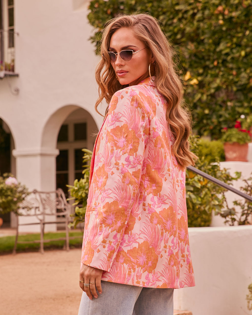 Step into the boardroom or the brunch spot like you own the place with a blazer that's pure blooming confidence. The Bloom Bright Botanical Jacquard Blazer redefines power dressing with a touch of bohemian ease. Woven from a stunning botanical jacquard fabric. this rigid non-stretch piece holds its sharp. tailored silhouette. Featuring padded shoulders. classic notched lapels. and a singular front button closure. it's a timeless statement piece espically when paired with the Bloom Bright Strapless Botanical Jacquard Peplum Top.