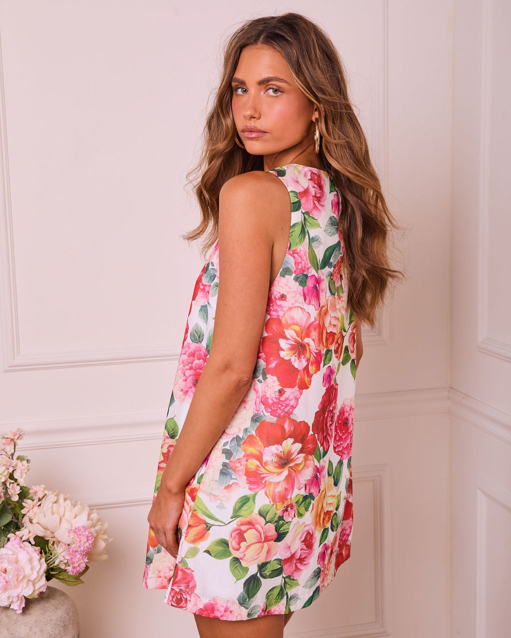 Step into the scene like you own it. The Bloom Heiress Floral Shift Mini Dress is designed for sunny days that melt into magical nights with your girls. This gorgeous number features a floral linen fabric in an easy-to-wear shift silhouette. The pull-on styling makes getting ready a breeze. while a sweet back keyhole detail adds a perfect final touch. It's more than a dress; it's an energy. a mood. and your new favorite look for that much-needed getaway.