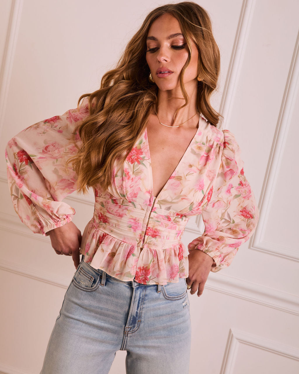 Why blend in when you were born to stand out? The Bloom Reveal Floral Chiffon Blouse serves major main character energy with every wear. This stunner features lightweight floral chiffon in a rigid. non-stretch silhouette that holds its shape beautifully. Drama arrives via billowy bishop sleeves and chic pleated details. while the subtle peplum hem adds a flirtatious finish. Secured with front hook and eye closures. it's the ultimate top for owning the room.