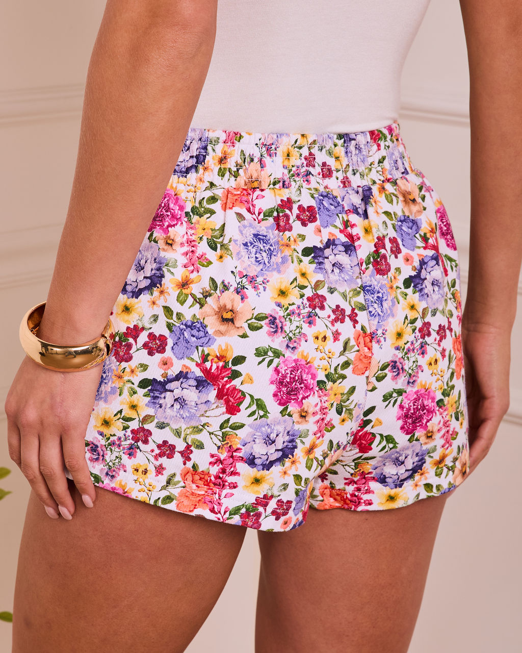 Give your legs the floral moment they deserve with shorts that are basically a party in a print. The Bloom Spell Twill Floral Shorts offer an instant dose of bohemian ease and warm-weather fun. Made from a structured twill fabric with a vibrant multicolor floral design. these rigid non-stretch shorts hold their chic shape. The comfortable elastic waistband and essential side slant pockets make them as practical as they are playful. Pair them with the matching Bloom Spell Twill Floral Tank Top (sold separately) for a full-bloom look.