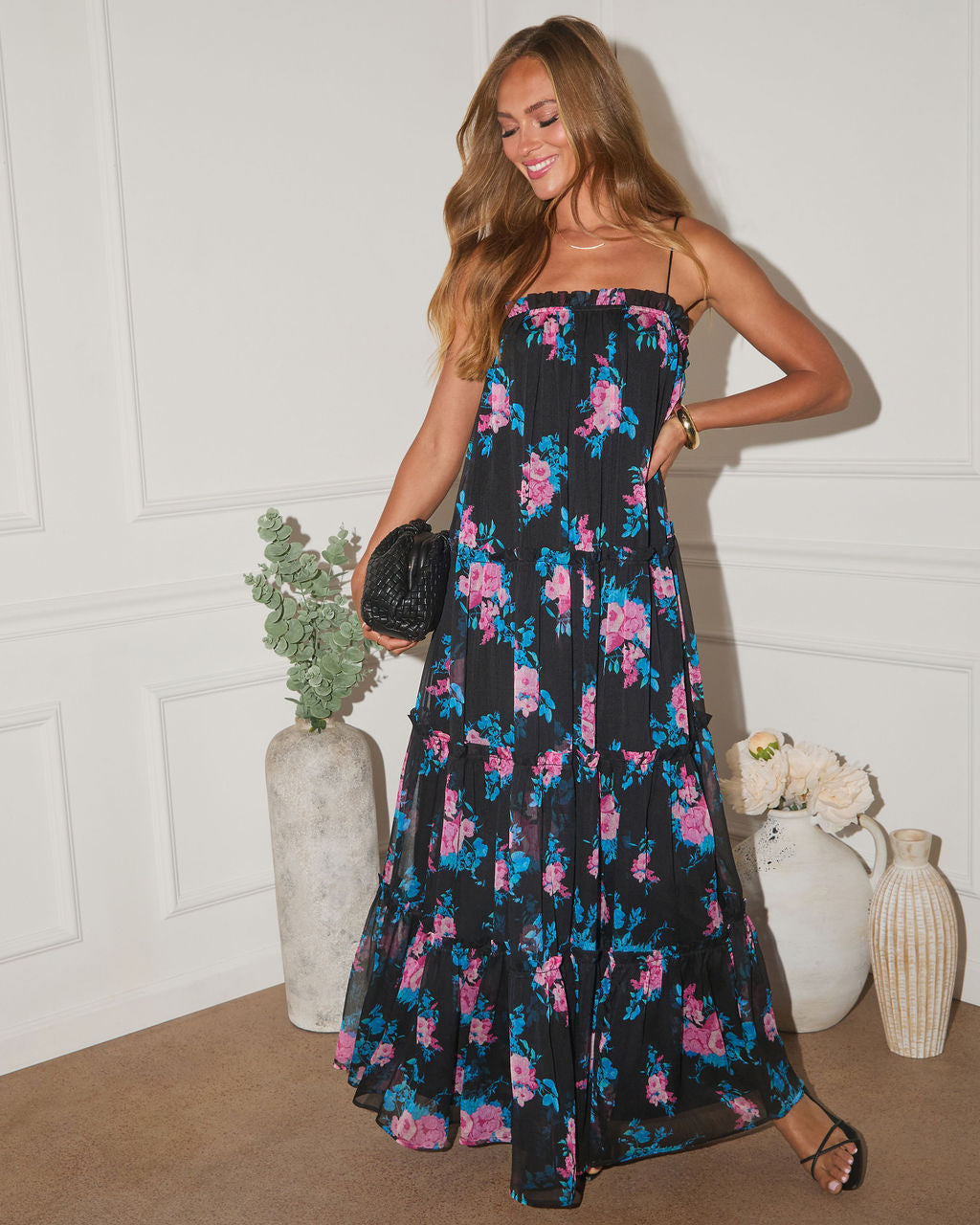 Slip into a summer daydream with the Boho Spritz Mesh Maxi Dress. Soft mesh overlays bloom with delicate floral designs. while subtle tiered ruffle trims add movement and a touch of whimsy. The ruffle neckline frames your glow. perfect for sun-soaked brunches or moonlit garden parties. Lightweight and floaty. this dress lets you stay cool while turning heads. blending relaxed vibes with elevated style.