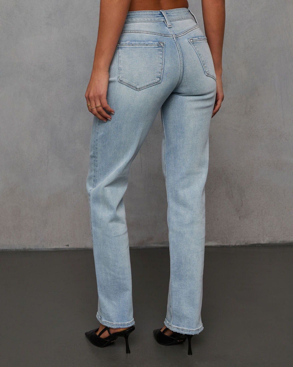 Refresh your wardrobe with the Clean Slate Super Stretch High Rise Straight Leg Jeans. Designed in stretch denim fabric. these jeans move with you for all-day ease while keeping their sleek. polished fit. Light whiskering details add just a touch of character. making them effortlessly versatile for any look. The straight-leg silhouette offers a timeless appeal that pairs seamlessly with striped blouses. tailored blazers. or your favorite relaxed knits.