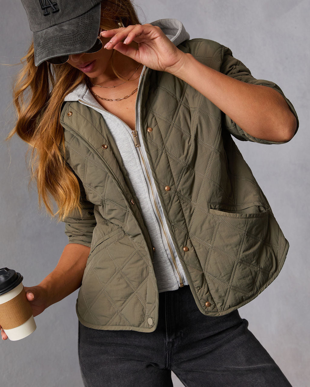 If your fall mood board could zip itself up and head out the door. it would be wearing the Cozycore Quilted Hooded Twofer Jacket. This effortlessly cool layer blends preppy polish with off-duty ease. featuring quilted ripstop fabric for texture and warmth without the bulk. The detachable hooded bib with a zip front gives you styling flexibility. wear it fully buttoned for brisk days or go without for a more relaxed vibe.