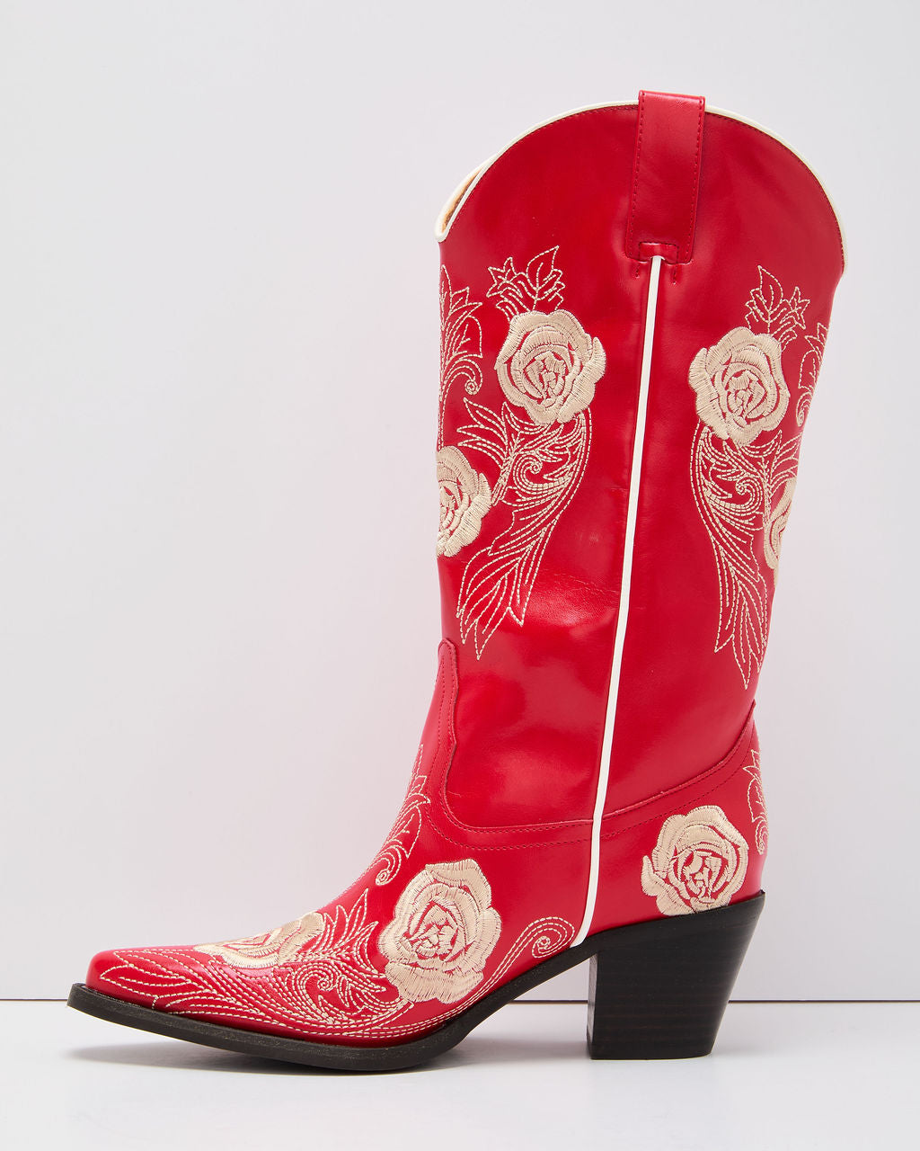 Stand out with the Dusk Rose Embroidered Western Boot. a perfect blend of classic charm and modern femininity. Made with smooth vegan leather. these boots feature intricate floral embroidery that's both bold and romantic. Designed for style and comfort. they include a chic pointed toe and easy side pull-tabs. Whether you're heading to a concert. a date night. or just elevating your favorite jeans. these boots add effortless glamour and are sure to turn heads.