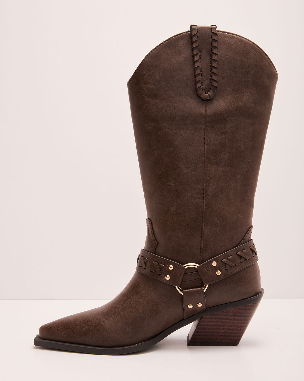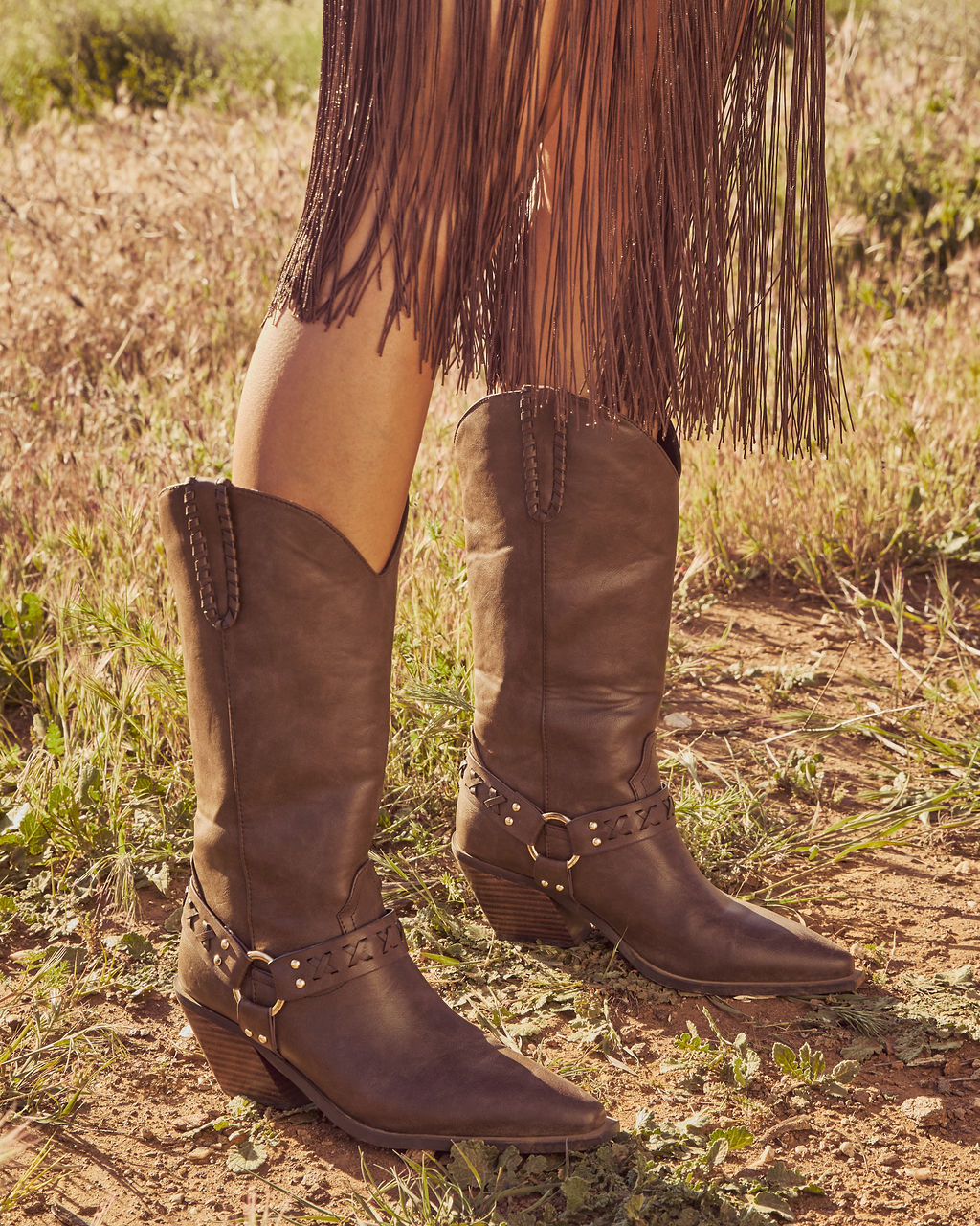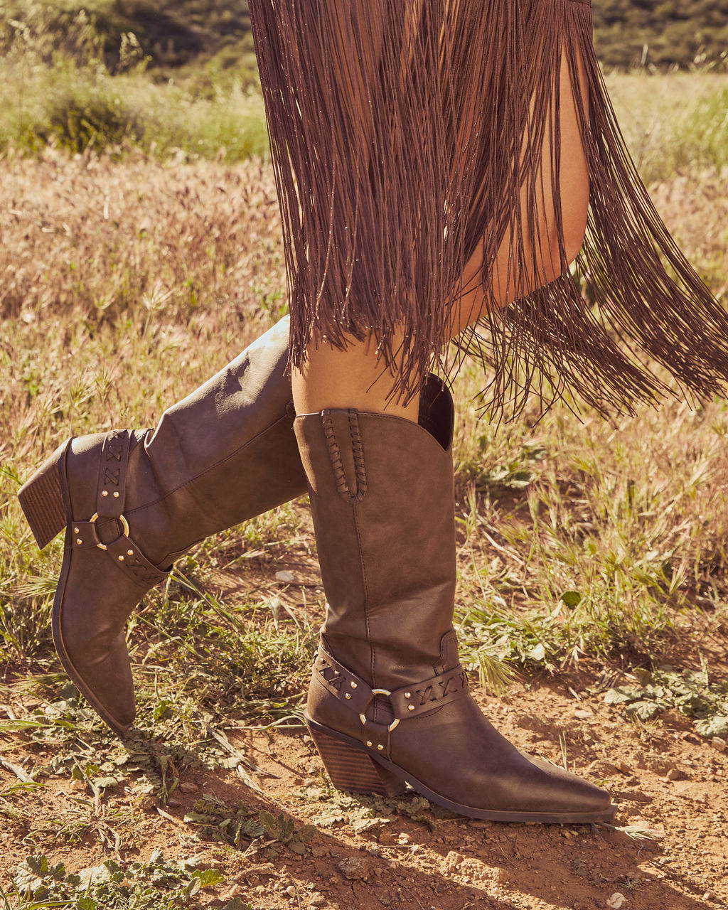Strut into sun-soaked getaways with the Echo Canyon Vegan Leather Western Buckle Boots. Smooth vegan leather fabric meets a chic attached buckle accent for ultimate festival romance vibes. These pointed toe stunners feature easy pull-on styling. so you can slip them on and quickly meet your girls. Your perfect match for an epic night out or wild festival adventures!- Heel Height: 2.9"
