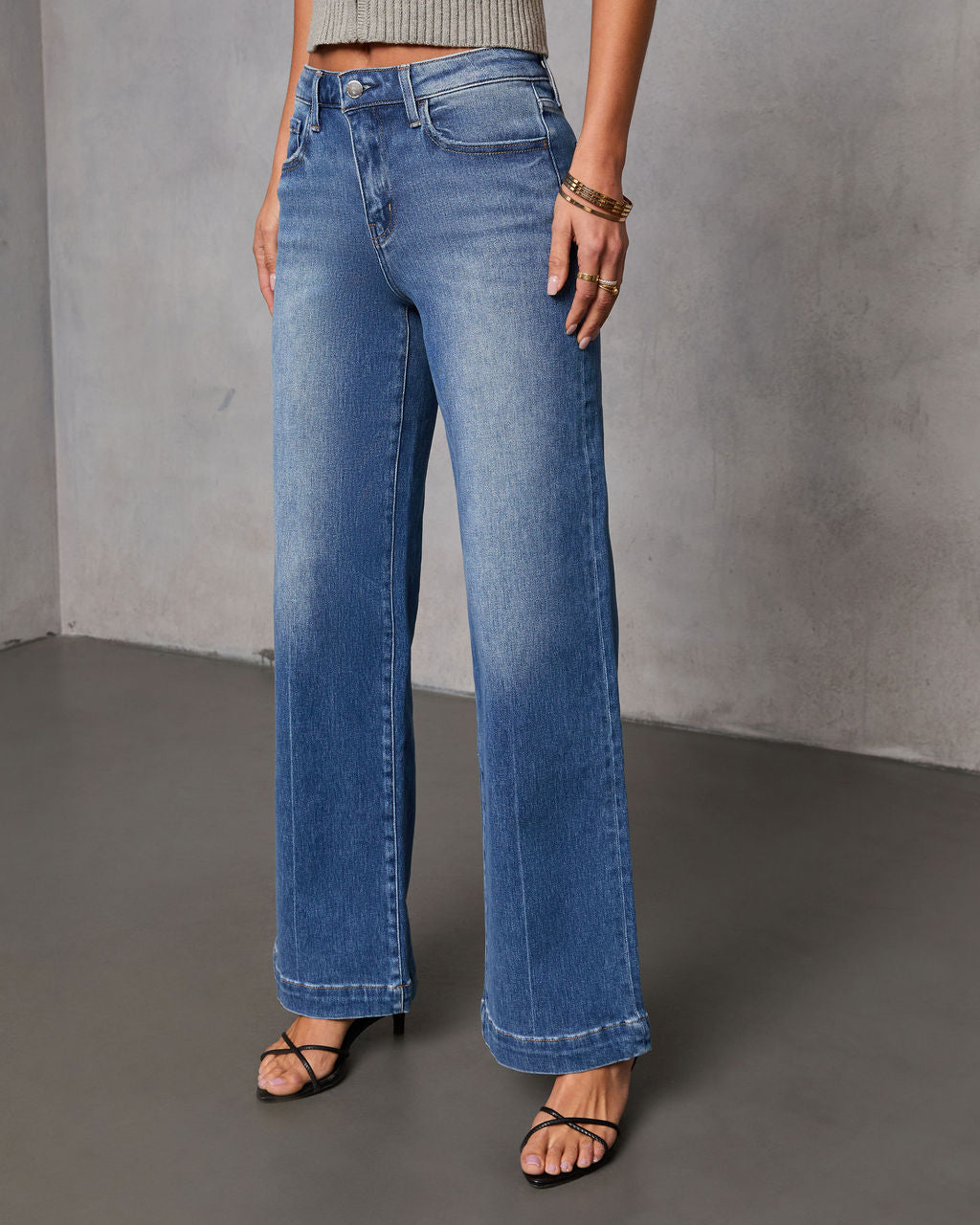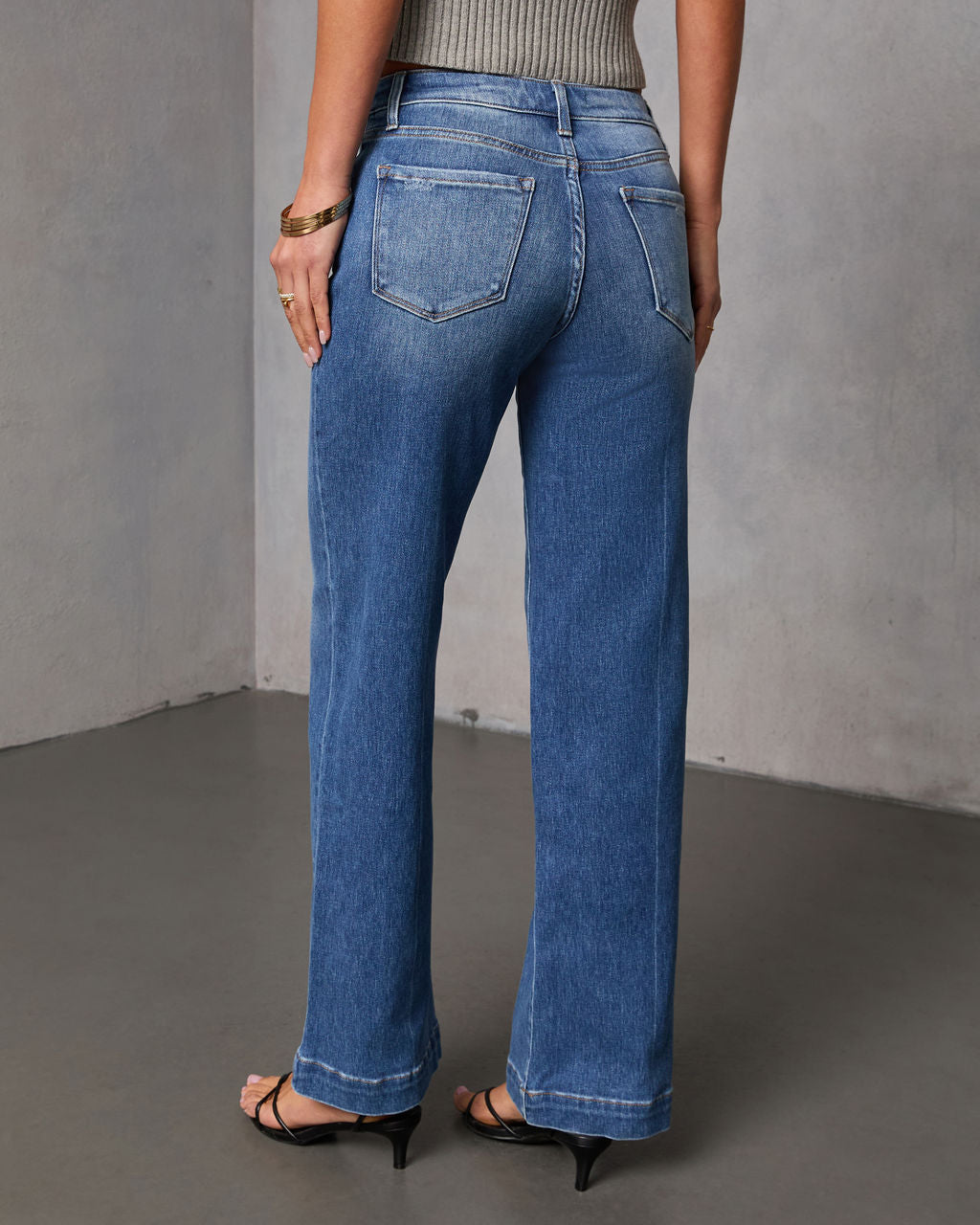 Let your wild heart shine in the Emberlie Straight Leg Jeans. a perfect mix of casual chic and effortless sophistication. Made with stretch denim fabric. these jeans offer a flattering fit that moves with you. making them your go-to for Valentine's Day plans. a night out. or a stylish day event. The light whiskering detail adds a touch of laid-back charm. while the straight-leg silhouette keeps your look sleek and polished.