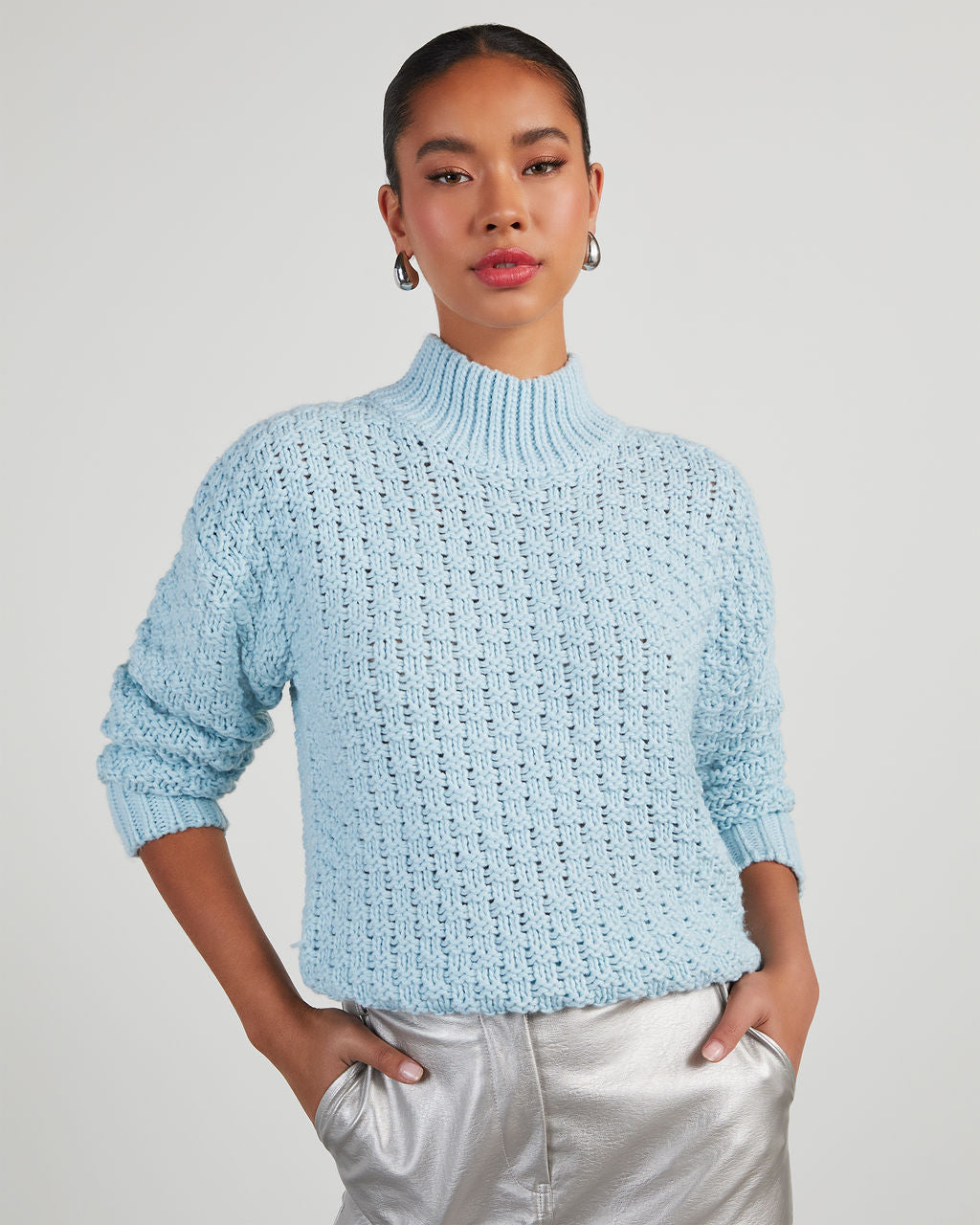 The Kerri Textured Mock Neck Knit Sweater is serving up cozy! This touchable layer features a mock neckline and chunky. textured knit fabric that looks as good as it feels. It's your wear-everyday-no-judgements new favorite sweater.