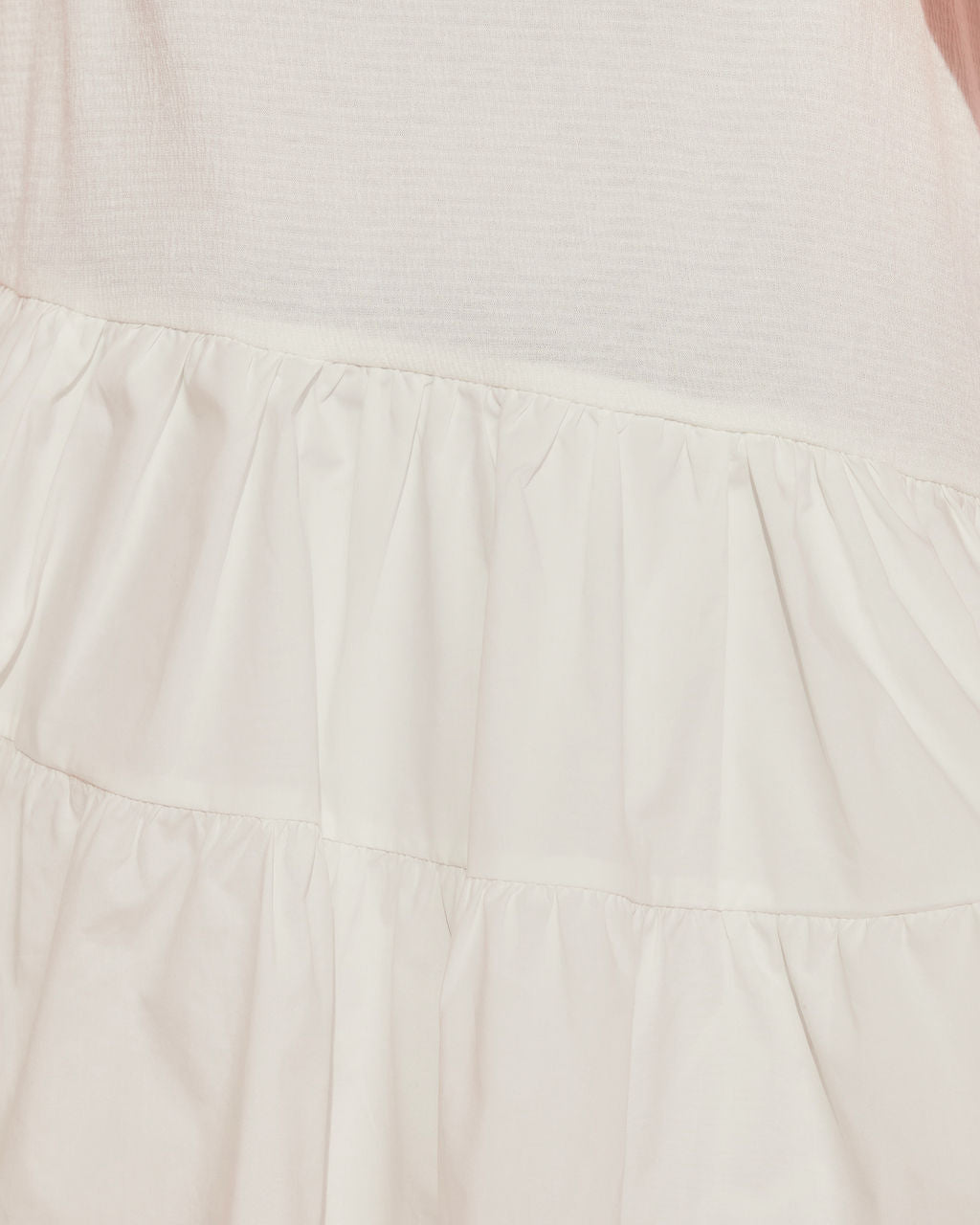 Self—67% Polyester. 32% Rayon. and 1% Spandex. Contrast—100% Cotton