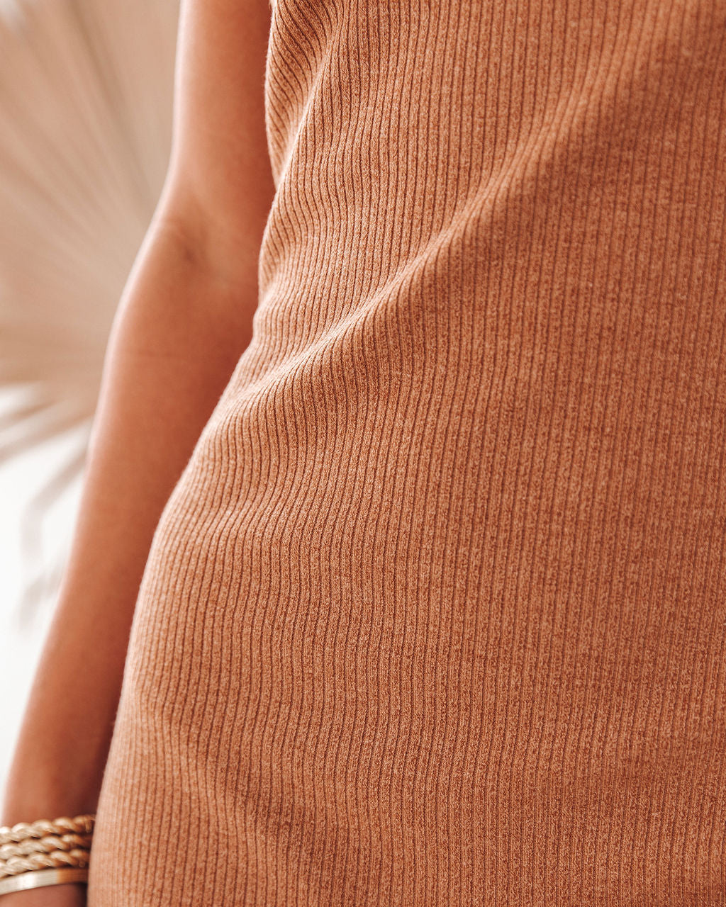 A knit midi is so versatile! Wear our Luna Ribbed Knit Midi Dress casual with white sneakers or dressed up with kitten heels! This camel hued fitted midi has adjustable spaghetti straps and a scooped neckline.