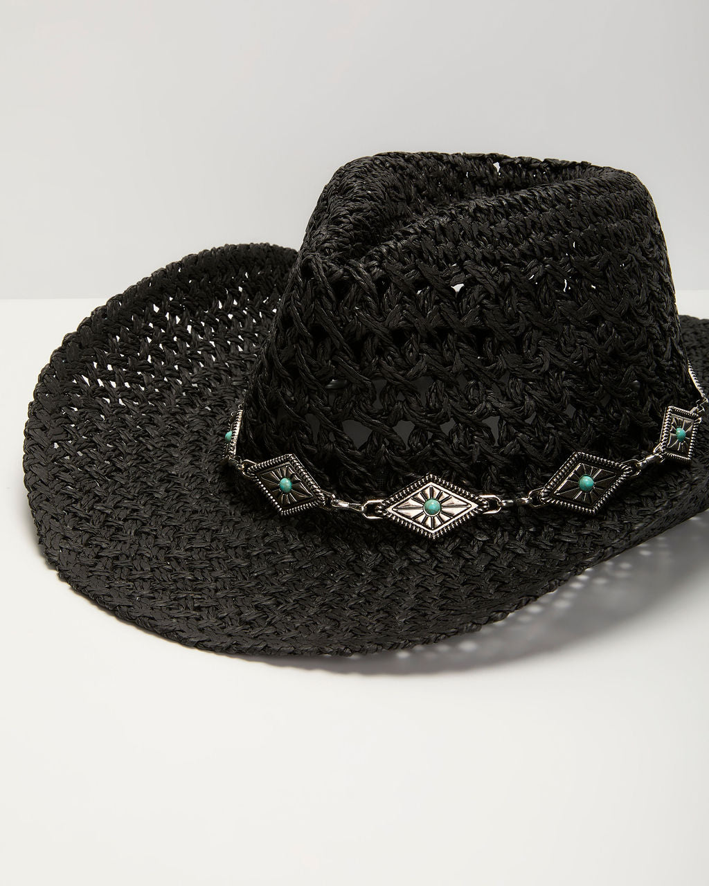 Step into the spotlight with the Main Stage Straw Western Hat. Made from beautifully woven straw. this hat combines style and functionality. offering shade while keeping you effortlessly chic. The standout feature? A stunning metal medallion charm adorned with a faux turquoise accent at the crown. adding a pop of color and a hint of boho flair. Designed for comfort. the adjustable drawstring interior ensures a perfect fit. so you can dance the day away without a worry.